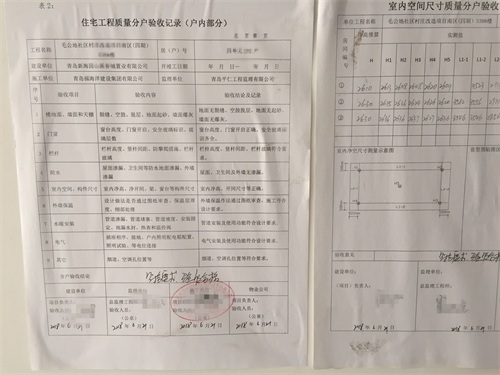 半岛记者现场了解到,当天青岛市住房和城乡建设局的工作人员也来到了现场,一位自称质监站的工作人员介绍,米罗湾四期工程2018年9月13日竣工验收,工作人员在抽查验收过程中,发现户型非常奇葩,质监站领导带队伍来现场核对图纸,后来发现图纸经过规划审批,工作人员只能按照图纸来抽查验收。
