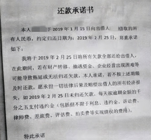 到了2019年,小姐妹们发现蒋某承诺的到期还本付息一直没到账,便向蒋某催收钱款。为了稳住她们,蒋某伪造了承包商姓名、身份证号码,还私刻了一个承包商的签字章,炮制了一份《还款承诺书》。