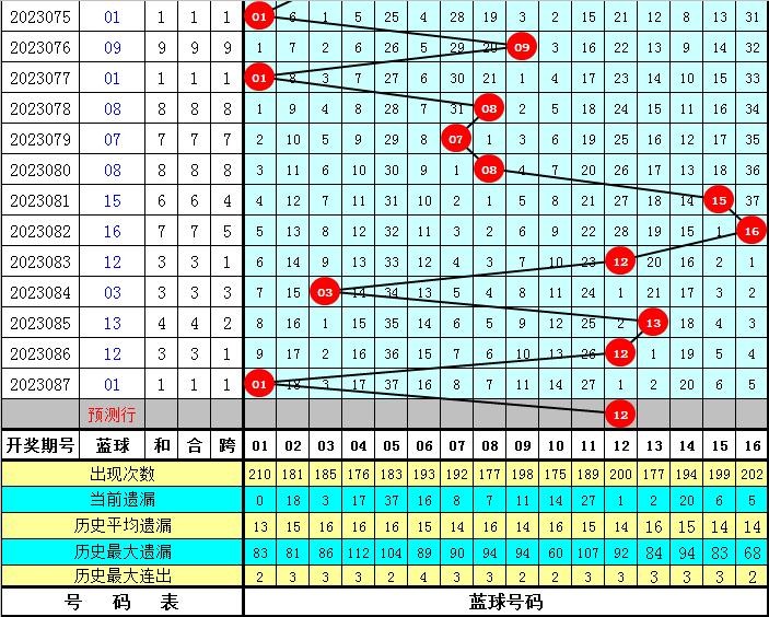 万妙仙双色球第2023088期蓝球冷热号码统计: