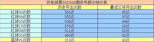 万妙仙双色球第2023088期红球热码统计:(统计近三年奖号)