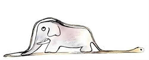我画的可不是什么帽子,我画的是一条蟒蛇,正在消化着大象。接着,我只好把蟒蛇肚子里的景象也给画出来,好让大人们看个明白。大人们老得需要人给他们解释。我的二号作品就是这样:
