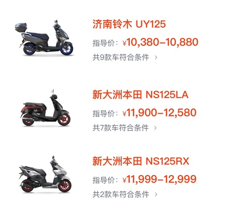 而相比之下,125踏板的价格却普遍偏高。例如,本田的NS125LA和NS125RX,以及铃木的UY125等,虽然只是风冷两气门发动机,功率只有6-7千瓦,而且还没有配备ABS或者仅配前单ABS,但价格却都在1.1万至1.3万之间。