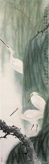 他擅花鸟、山水,画风清新隽永,笔墨高迈,画面干净典雅,诗意盎然,在岭南画坛独树一帜。