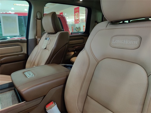 座椅上面,不光有LONGHORN长角号的logo,还有刺绣,中央扶手也有,身份彰显的很明确。