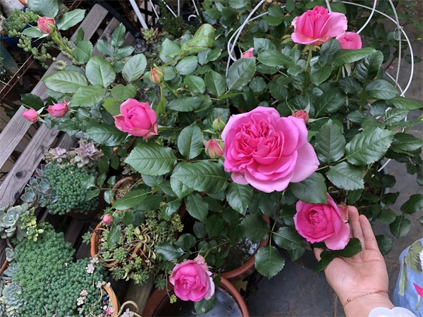 判断一款月季花好不好养,生长速度快不快和抗病能力强不强是重要的参考标准,一般而言,叶色绿得发亮,生长速度快的品种,抗病性都很强。