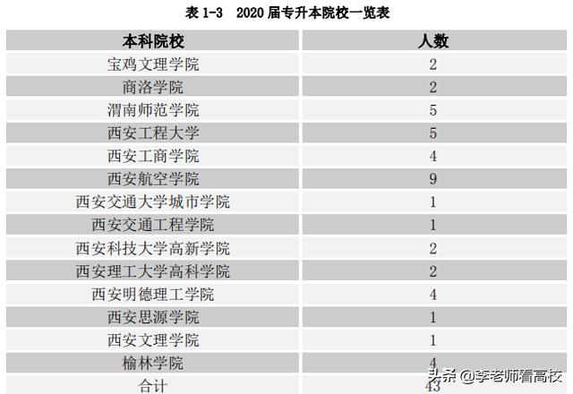 具体来看,学校2020届毕业生中共有43名优秀毕业生顺利通过了专升本考试,进入西安航空学院、渭南师范学院、西安工程大学等省内本科院校继续深造,其中火电厂集控运行专业有7名毕业生选择继续深造,而工业过程自动化专业毕业生继续深造人数达到了9名,不过整体来看,学校在省内同类院校中深造比例并不高。