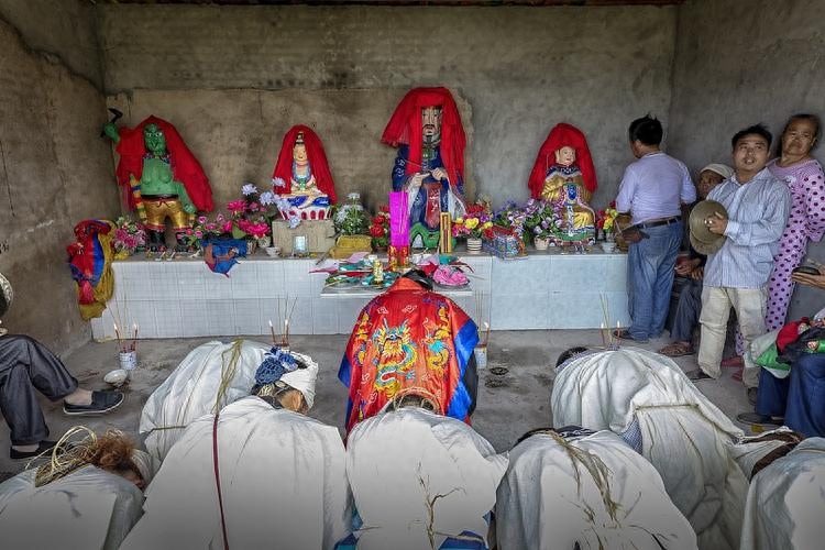 在仪式前,孝男孝女们会在孝子的带领下,先围绕棺材走一圈,见逝者最后一面,之后封棺。接下来,就是吊唁仪式的开展。