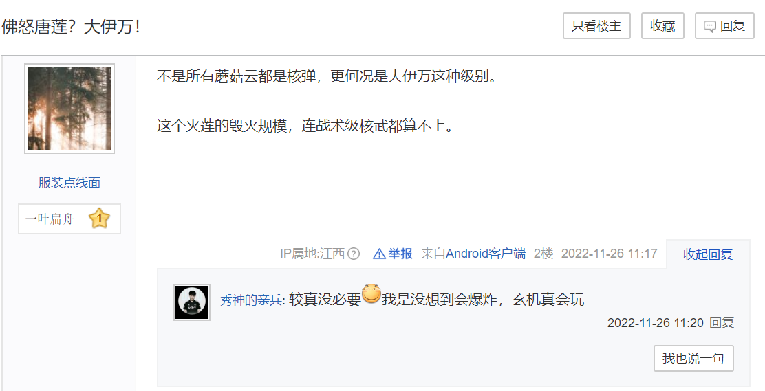 虽然说从特效来看这个佛怒唐莲非常的炫酷,但是却也引起了不少网友的讨论,其中不少网友觉得这个佛怒唐莲的特效有些过于夸张,甚至已经偏离了暗器的范畴。从之前出现的唐门暗器来看,大部分的暗器都是比较正常,不过到了佛怒唐莲这里却是变得不正常了,与其说是暗器倒不如说是一个炫酷的魂技。
