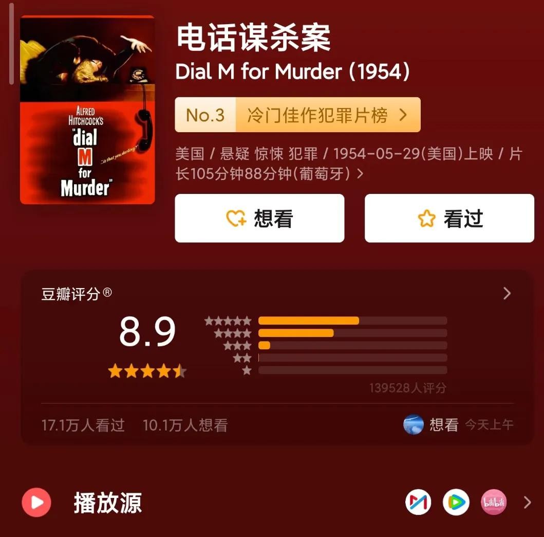 简介| 丈夫策划用一通电话作为信号谋杀出轨妻子,却因计划漏洞百出而陷入更复杂的漩涡。希区柯克经典之作,全程密闭空间内的心理战。