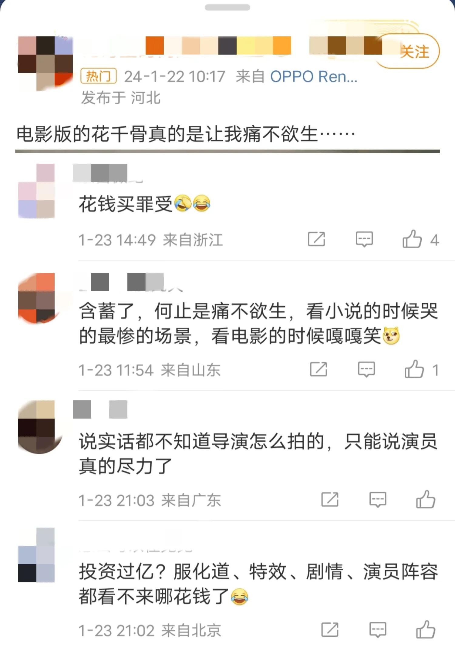 不过确实,电影版《花千骨》投资1亿,算的上是大制作了,但是服化道看起来像是A级网剧,粗略得很!男主的颜值也撑不起来!