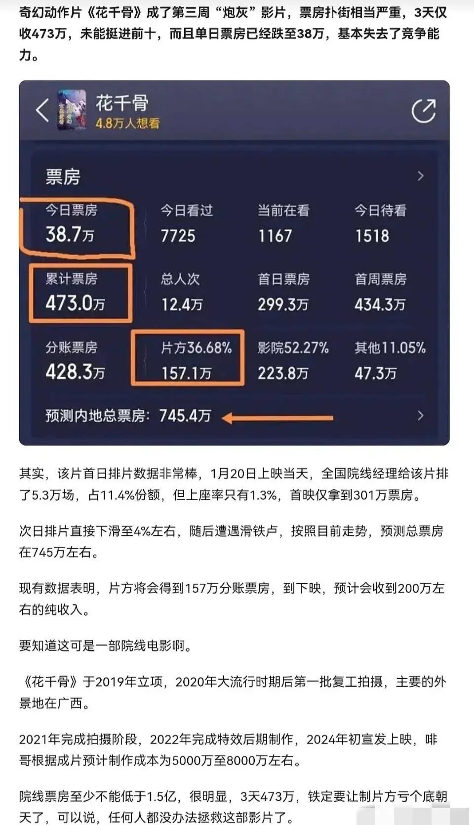 电影《花千骨》上映三天票房473万,真的太惨淡了,可以说是扑得彻彻底底!