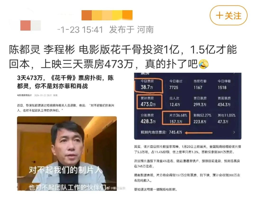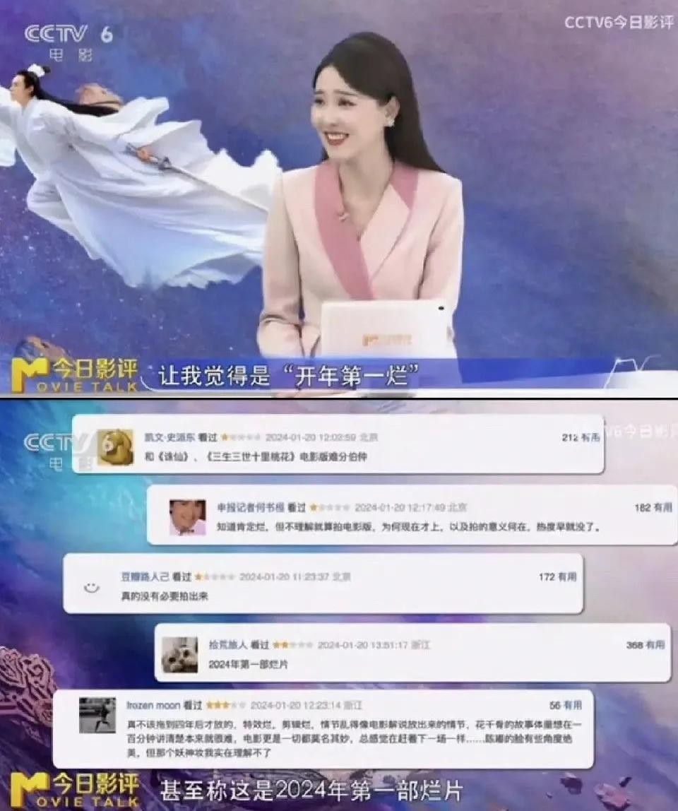 央视六公主影评人说,陈都灵和李程彬主演的电影版《花千骨》是“开年第一烂”,2024第一部烂片。