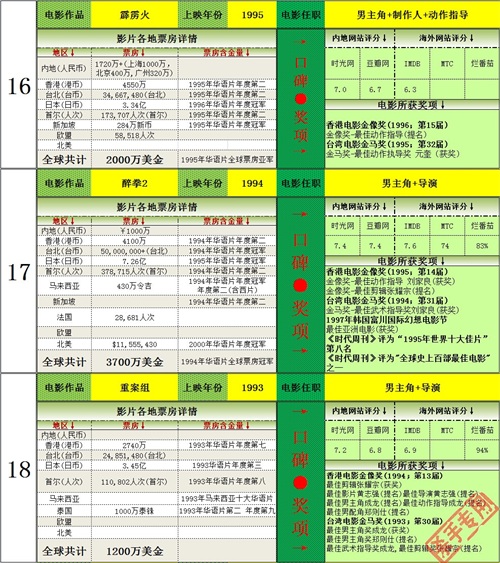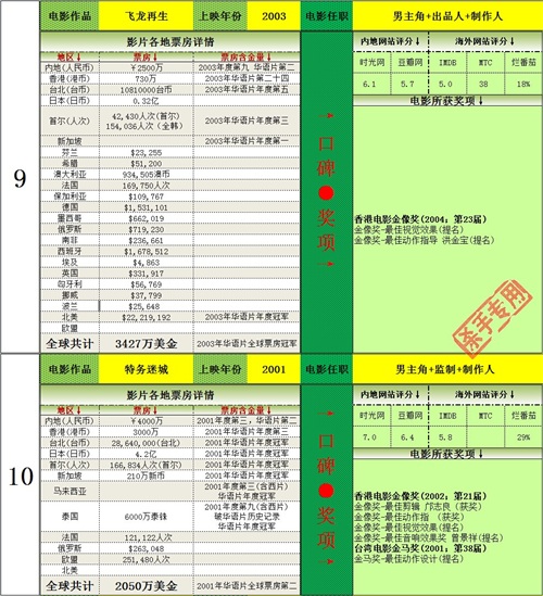 2.其中9部华语片累计约1780万美金们平均约198万美金。其中8次获得华语片年冠,华人第一。