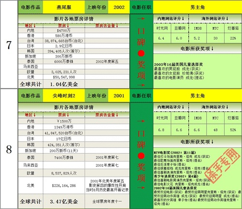 1998《尖峰时刻》破华人主演电影全球票房纪录