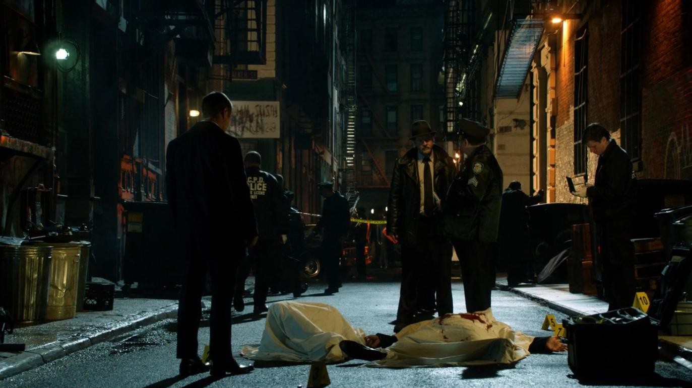 然而此时戈登已经开始跟目击人聊天了,这个案子甩不掉了,戈登看着哭泣的韦恩安慰他,戈登像韦恩这么大的时候,一个醉驾司机撞上了他们的车,戈登的爸爸也死了。他向韦恩保证但一定会抓到罪犯,无论现在世界有多黑暗 光明一定会来的。韦恩深受感触,告诉了戈登事情的经过,此时韦恩家的管家阿尔弗来接走了韦恩,他看出戈登是新来的祝他好运。