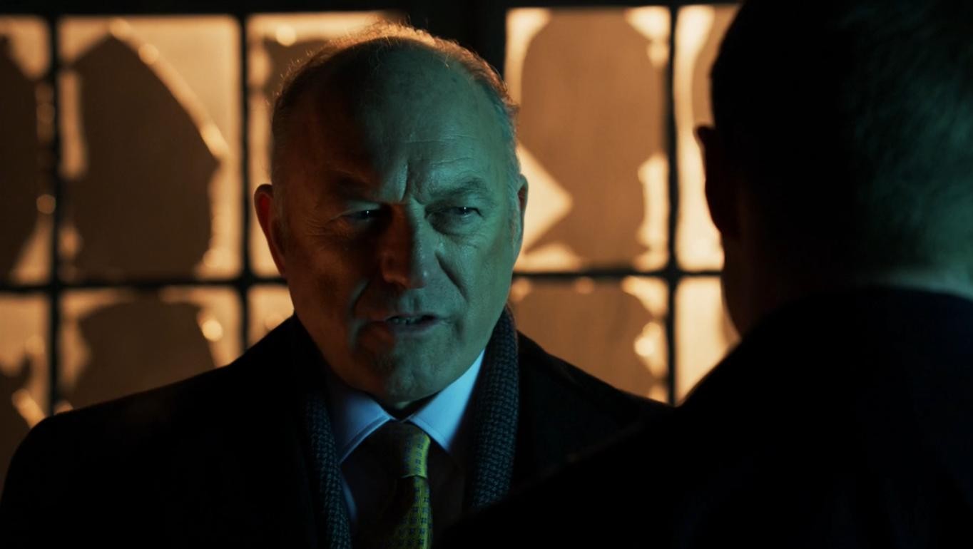 他见门开山的问菲什那天和布洛克说了什么,菲什虽然没有明说,但是她不放戈登走,戈登就明白了是布洛克和菲什设计陷害了大高个。想要这件案子尽快破案而隐藏背后真正的主谋,大高个不过就是个替罪羔羊,戈登弄明白了但是也走不掉了,两拳难敌四手戈登被菲什抓了起来,送到了屠宰场打算除掉戈登。