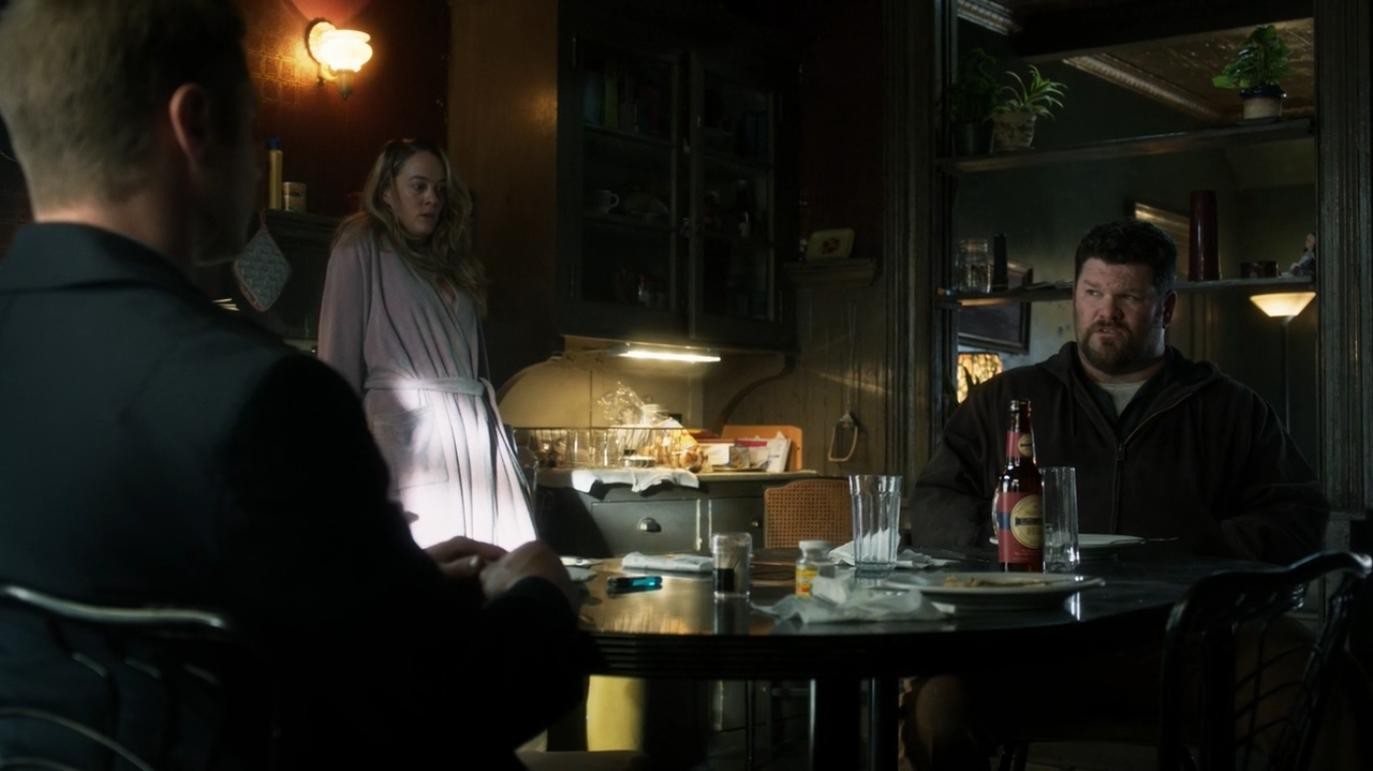 他们来到那个人的家里,大高个正在家里,除了他以外还有他的妻子和女儿,戈登询问他周六晚上在干嘛,他说在家里,布洛克想搜查大高个的家说他拿了珍珠项链,大高个听到这里赶紧撒丫子就跑,边跑边回头射击,戈登赶紧追了上去因为戈登的仁慈迟迟没有开枪。结果被大高个占了上风差点被杀死,还好布洛克及时赶到将大高个杀死了。