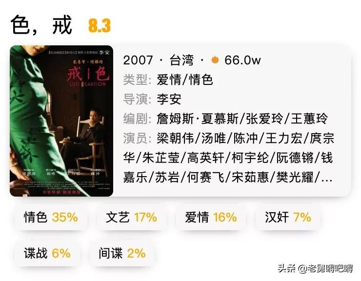 抗战时期的上海,女大学生王佳芝利用美色接近特务头子易先生,意图行刺,最后由性生爱放走了易先生。