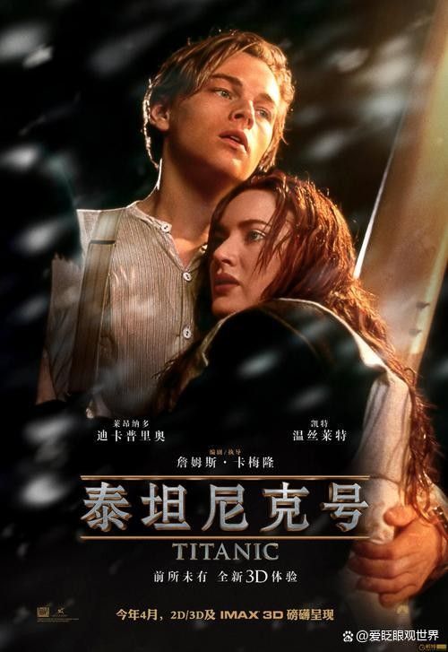 《泰坦尼克号》是一部由詹姆斯·卡梅隆执导的浪漫灾难电影,也是二十世纪福斯电影公司出品的一部美国电影。该片于1997年12月19日上映,并获得了11项奥斯卡金像奖,包括最佳影片、最佳导演、最佳女主角、最佳男主角、最佳音效、最佳视觉效果、最佳音乐等。之后该片于2012年4月10日以3D版在中国内地重映 ,2023年4月3日以25周年纪念版在中国内地重映