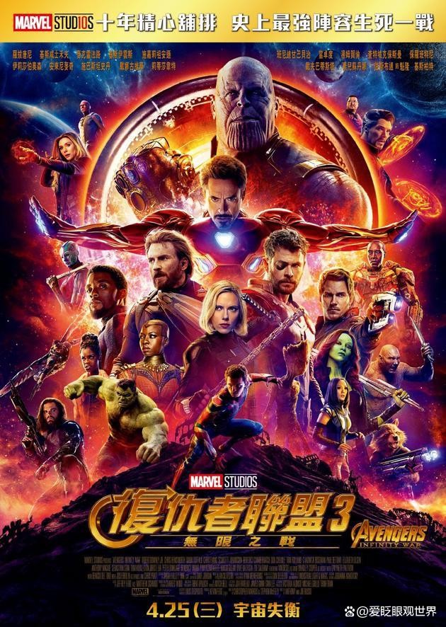 该片是漫威电影宇宙10周年的重磅之作,复仇者联盟的核心成员集结完毕,共同抵御灭霸,背景承接于《钢铁侠3》,事件源于《雷神3:诸神黄昏》,奥创的暴走让世界陷入了混乱,为了应对危机,复仇者联盟展开调查,并展开了一场拯救地球的大战,但出乎所有人的意料的是,真正的反派并不是奥创,而是拥有强大能力的灭霸 。