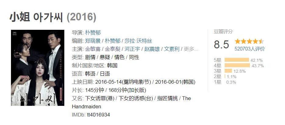 韩19禁电影《小姐》上映六天观影人次突破200万这部电影凭什么?