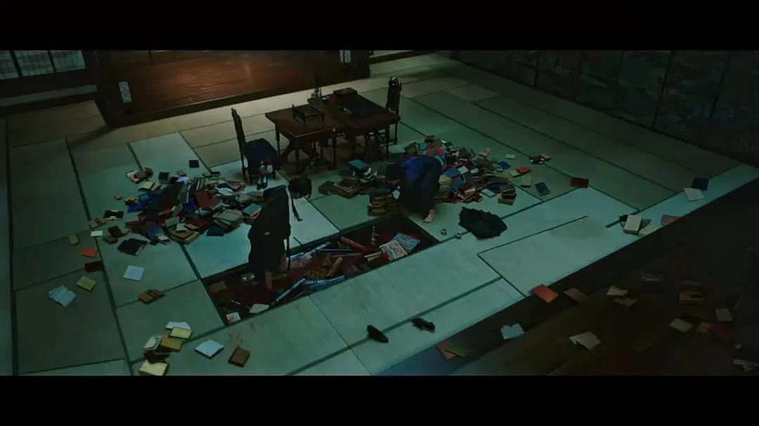 秀子带着南淑熙进入她真正的世界,那个“地下室”里面是秀子“工作”的地方,她在这里被训练给那些达官贵人读小黄书,而南淑熙看到这些“肮脏”的书籍后,怒斥秀子姨夫变态,随后把所有他珍藏的书画毁于一旦。