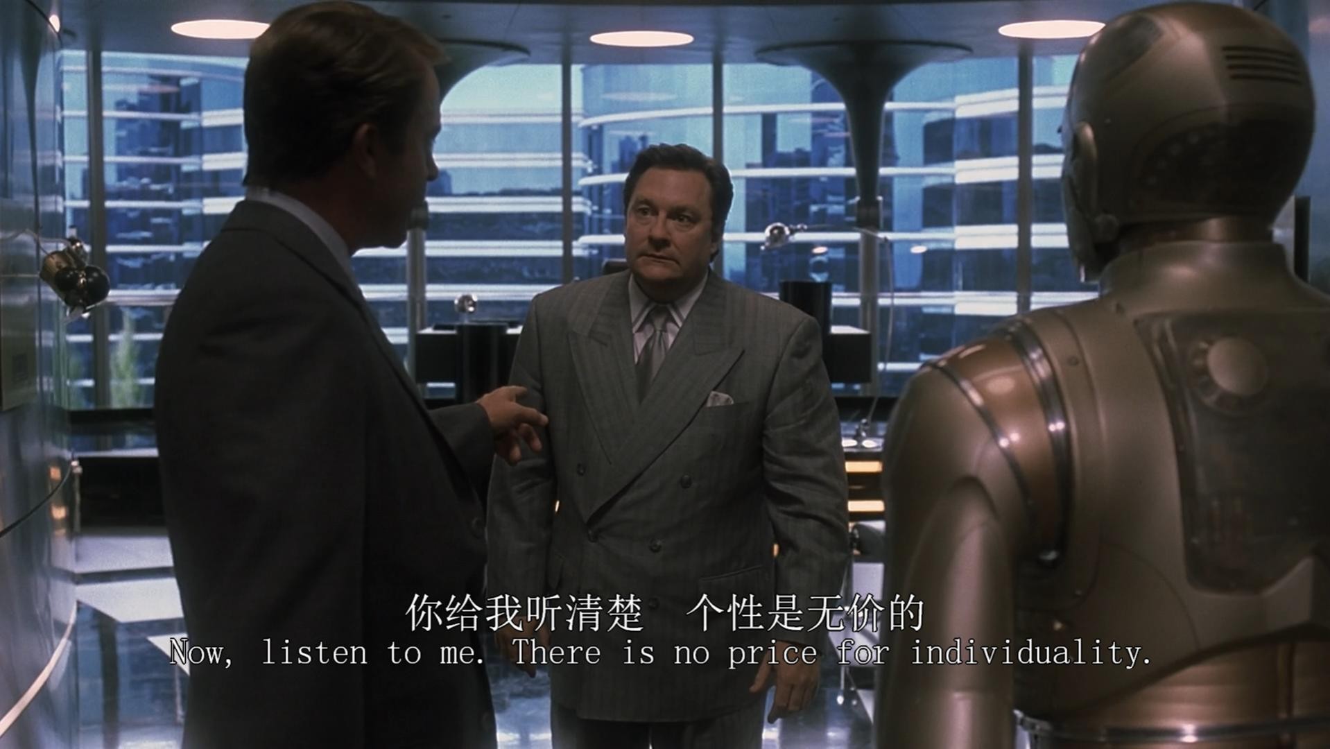 罗宾·威廉姆斯的表演将机器人的形象诠释得非常富有生命力,而且电影中的特效细节还有艺术加工即华丽又精美。虽然是科幻片,但是片中关于未来世界的画面还有介绍并不多,只有几个城市场景的过场和日常生活的细节,没有过多的台词说明。