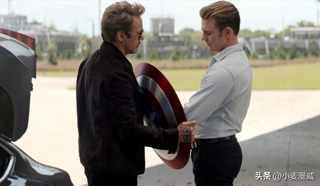 到了《复联4:终局之战》,史蒂夫和钢铁侠冰释前嫌,钢铁侠也将圆盾送给了美国队长。