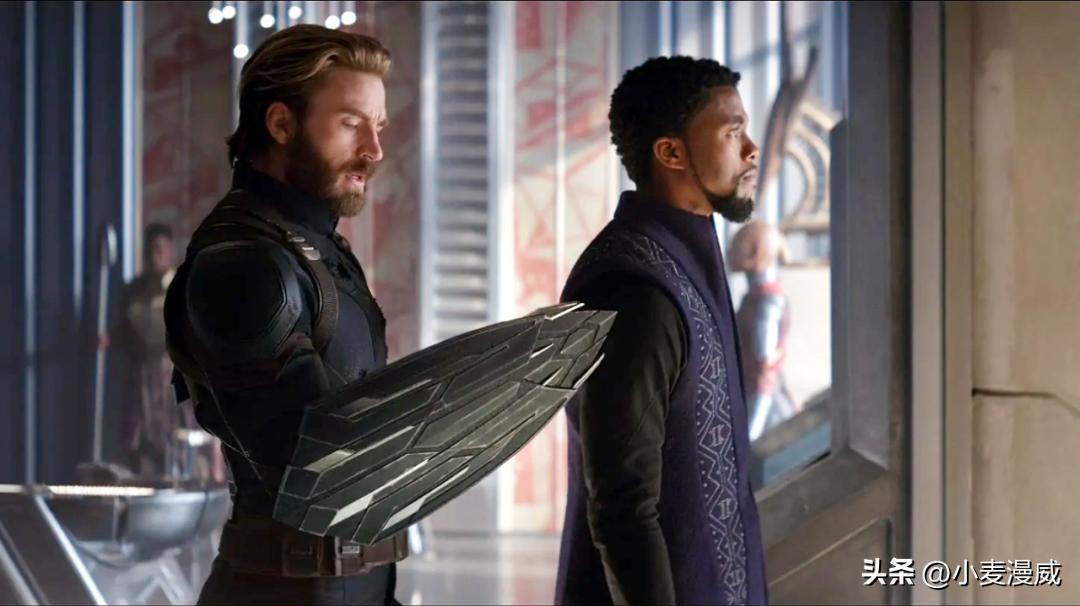 《美队3》之后,失去盾牌的史蒂夫来到瓦坎达,为了对抗灭霸的大军,黑豹特查拉给史蒂夫打造了一对护腕盾牌。