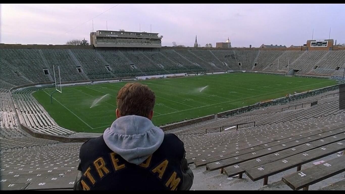 今天向大家推荐一部经典励志电影《追梦赤子心》,英文名叫《RUDY》,影片取材自一个真实的故事,影片中没有王者归来力挽狂澜的片段,只是讲述了主人公(一个美国普通家庭中名叫Rudy的平凡青年)为了自己的梦想(去诺特丹大学上场打橄榄球)做出的一点一点的努力,最后实现自己梦想的故事。主人公像大部分人一样资质平庸,运动天赋也一般,面对全美20所顶尖学府之一的诺特丹大学,唯一让他坚持下去的就是他自己的初心,其实影片到最后也没有出现凤凰涅槃的宏伟剧情,只是在自己的执着努力和所有队员及全场观众的帮助下,一直坐冷板凳从来没有上场的Rudy在毕业前最后一场比赛的垃圾时间上场了几秒钟,虽然只是几秒钟的垃圾时间,但对于Rudy来说却是完成了自己心中的梦想,让他的大学生涯画上了一个完美的句号,自己的人生也开启了新的篇章。
