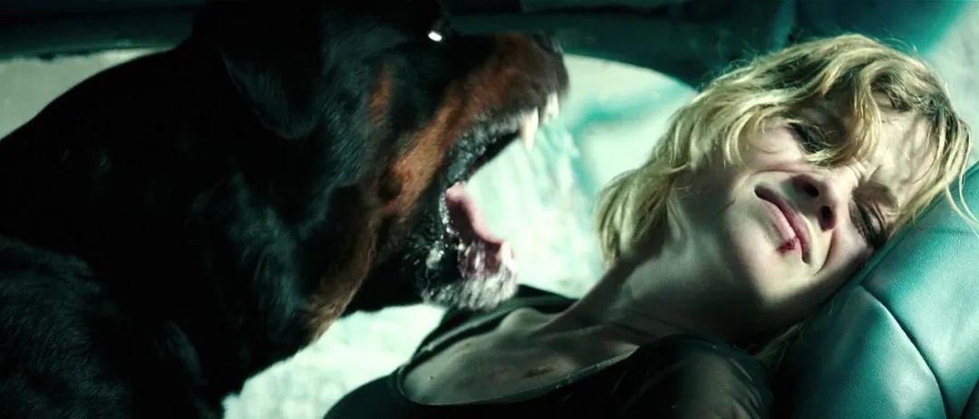 大BOSS除了不断惊扰和追逐着这一对男女,还放出了一条凶恶的罗威纳犬。这使得女主角即便逃出屋外,都必须在废车内跟恶犬争斗,让全片变成小型怪兽猎杀片,充满着致命的危险!