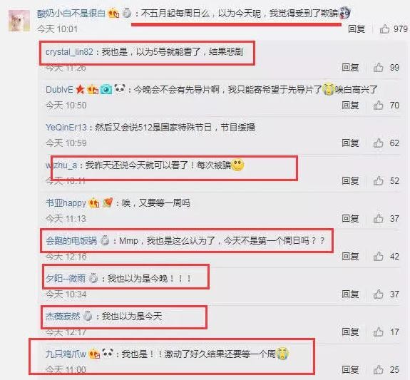 但是在5月5日的时候人们并没有迎来节目的开播,《极限挑战》的官微也发布了新的海报,更改时间为5月12日起每周日开播。很多的网友们在期待的同时也对节目组产生了不满,网友们也是想早点看到节目播出,但是很多的网友们因为播出的日期非常的担心。因为5月12日是国际护士节和母亲节,而且还是汶川地震纪念日。