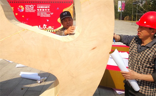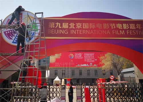 第九届北京国际电影节即将于4月13日正式开幕。今天(11日),在北京市怀柔区国家中影数字制作基地,电影节电影嘉年华正在紧张布置当中。 卜向东 摄