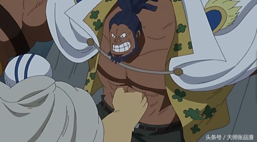 这位彪形大汉会息吹气功加上六式,能随意变换身形,运用自如,但是面对同样善于变形的乔巴,不堪一击,最后被乔巴重锤KO。