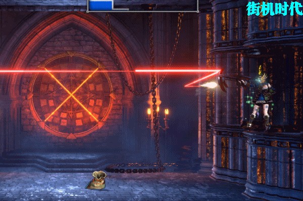 但是,很多时候这个屏障都是无效的。BOSS只需要一个飞刀就能破解。受伤硬直一直都是《恶魔城》系列最大的弊病啊!不过在很多版本中可以通过装备抵消。