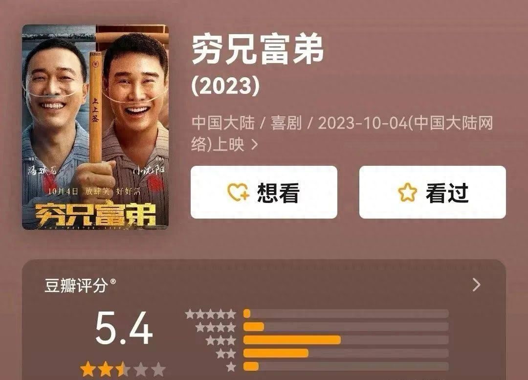 观众对小沈阳新电影《穷兄富弟》的评价并不高,这也反映出了观众对于电影质量和内容的要求越来越高。赵本山对小沈阳的帮助和推广,