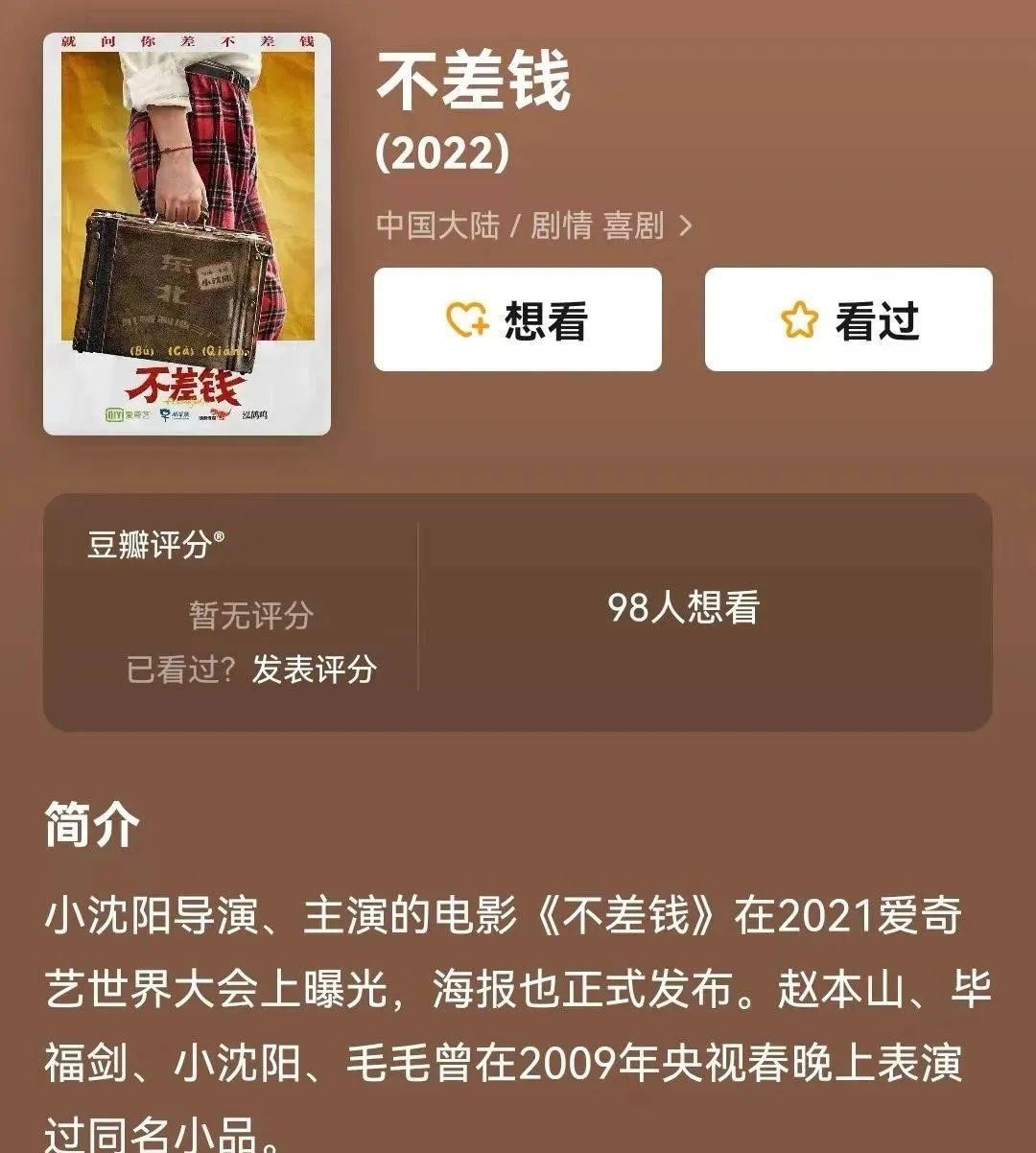 他决定继续拍电影,并且推出了一部名为《不差钱》的新作品。虽然这部电影的热度并不高,观众并没有热情地接受它。尽管小沈阳还发布了一些新歌,