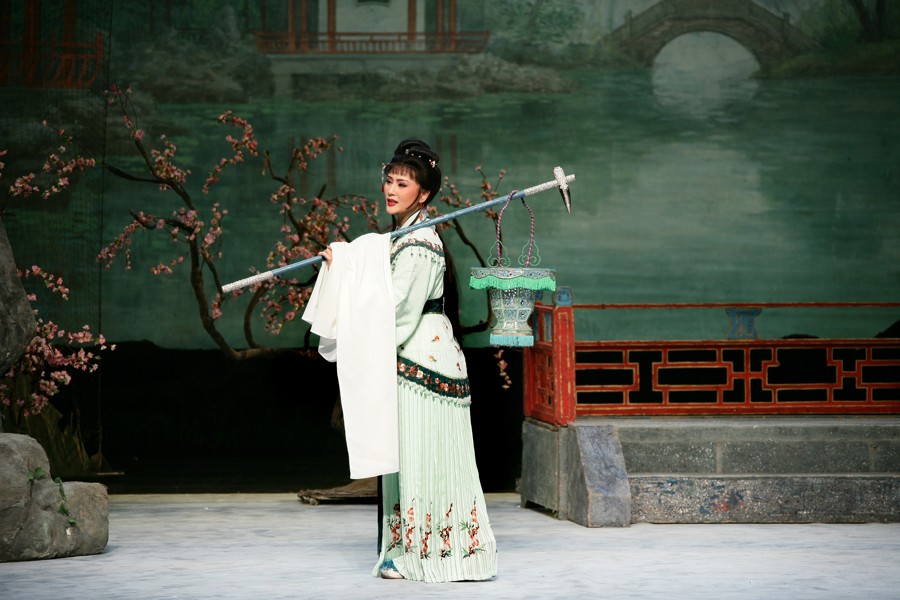 《梁山伯与祝英台》是越剧的早期剧目,几乎所有的流派创始人都演出过。10年前,上海越剧院在建院60周年之际将袁范版梁祝重新搬上了舞台,除流派唱腔的不同外,这个版本在剧情场次中也有调整,不仅增加了“楼台会”后“送兄别妹”的情节,更恢复了在舞台上绝迹已久的“英台哭灵”。“英台哭灵”是袁派经典三哭之一,也是袁范版梁祝独有的唱段,袁雪芬曾于2004年亲自改过唱腔,后来传授给爱徒方亚芬,“哭灵”一折情感真挚、唱腔凄婉动人,催人泪下。“送兄别妹”也是一场催泪大戏,在送别梁山伯的途中,祝英台在唱词中以四季、花语为题借景抒情,诗意地表达了梁祝的生离死别之情,感人至深。