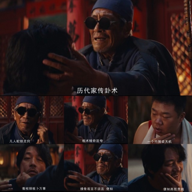 比较有趣的一幕是一行人遇到了摆摊算命的陈瞎子,陈瞎子露了一手——摸骨相术,着实有趣又好笑,但后面又真的让人怀疑他是不是真的瞎了?