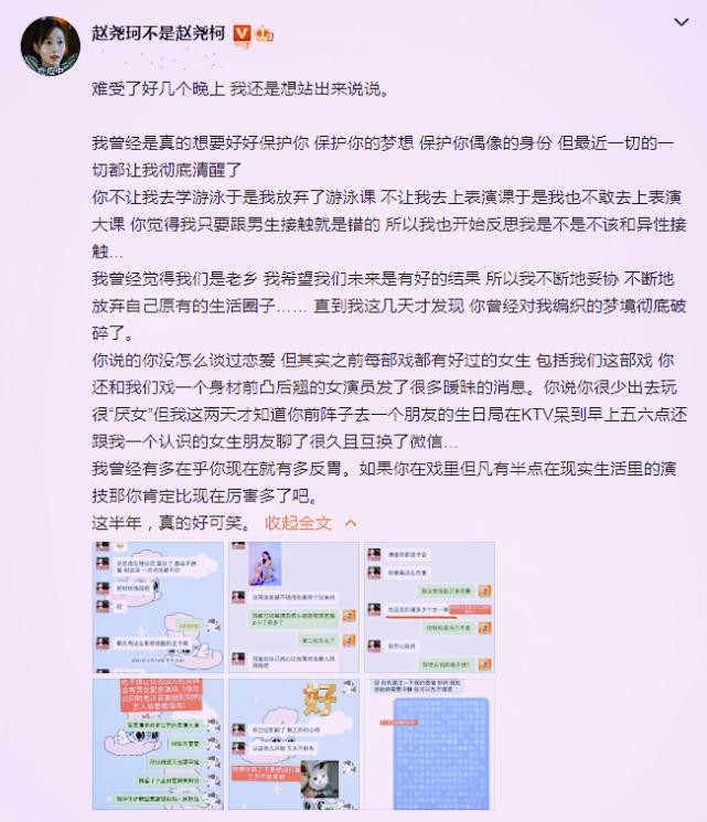 在这段感情中,男方对赵尧珂管得特别严,不允许她上游泳课,就连上表演大课都被禁止,只想让她生活在小圈子,避免与男生接触的机会。就是在这段畸形的恋情中,珂珂发现邓超元不止对自己一个女生好,反而对剧组拍戏时接触过的女生,都保持着暧昧的关系。