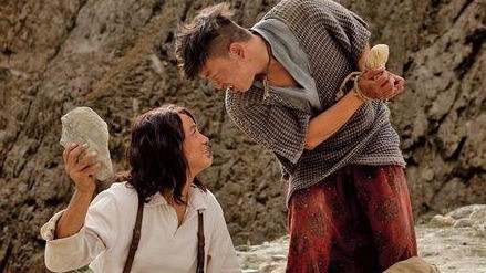 在影片的最后,医生帮助哑巴寡妇和孩子离开了这个村子,老族长死去,愚昧的村民进行古老的送葬仪式,众人仰着头大喊,这再次引发地震,山顶的巨石终于被震落了下来。