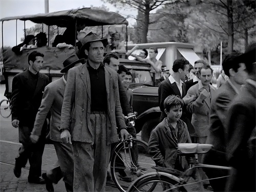 《偷自行车的人》的导演,采用的是纪实主义的拍摄风格,为的就是能够真实还原当时社会的杂乱不堪,人们的无奈与苟活。