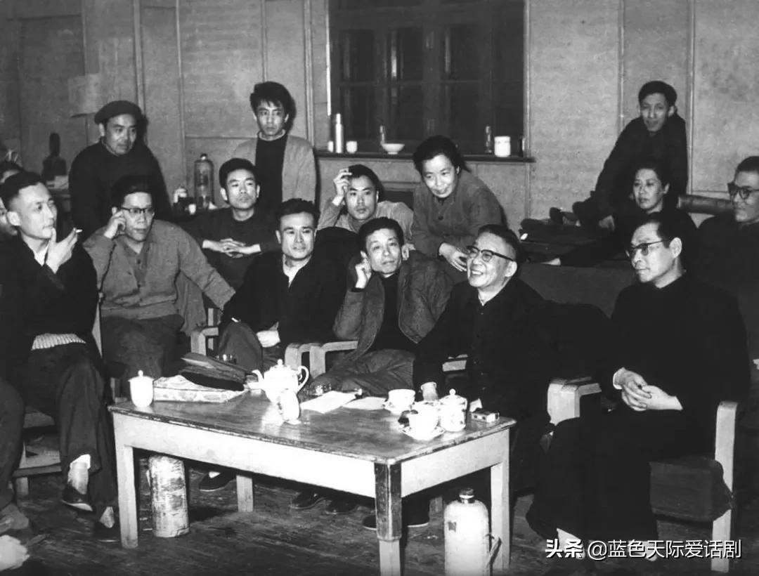 于是之、英若诚、老舍、焦菊隐在读《茶馆》剧本