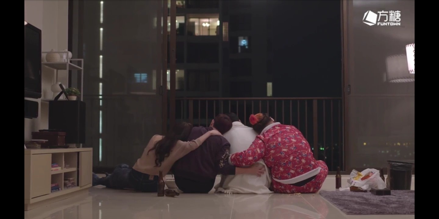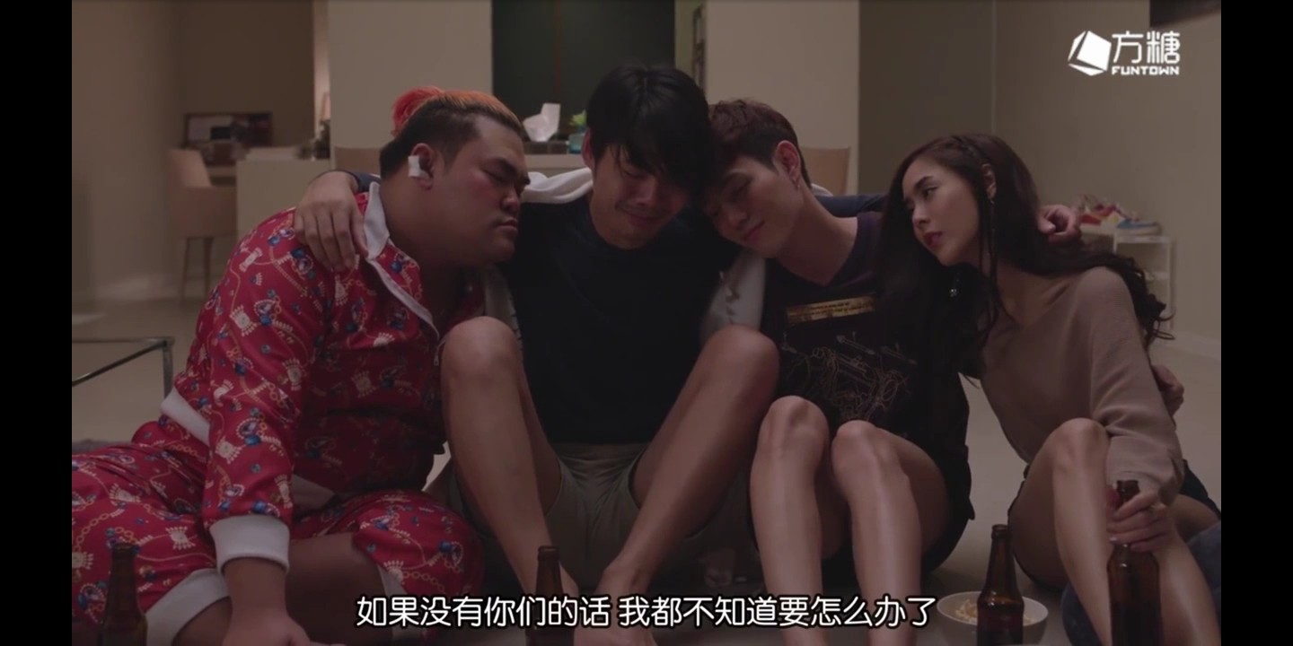 开局失恋,四人海边沙滩痛哭喝酒唱歌,唱得撕心裂肺痛哭流涕,辛酸中莫名有些感动。你笑,全世界都陪你笑,你哭,多数时候便独自哭,痛哭的时候有人和你一起,比什么言语安慰都强。