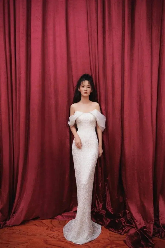 李沁身穿白色抹胸长裙高清写真,她的曼妙身材太性感撩人