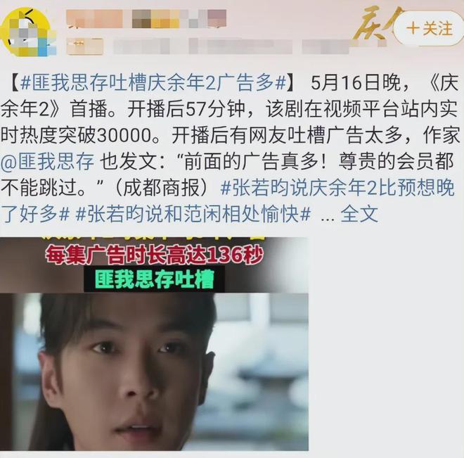 这庆余年 2 的广告多到让人无力吐槽,就连著名作家都发文说庆余年的广告不是一般的多。