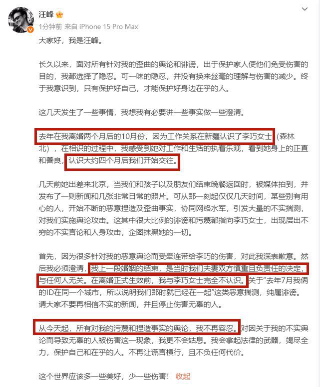 如今,在汪峰官宣恋情一天后,作为这段恋情的另一位当事人,森林北也对恋情进行回应了。