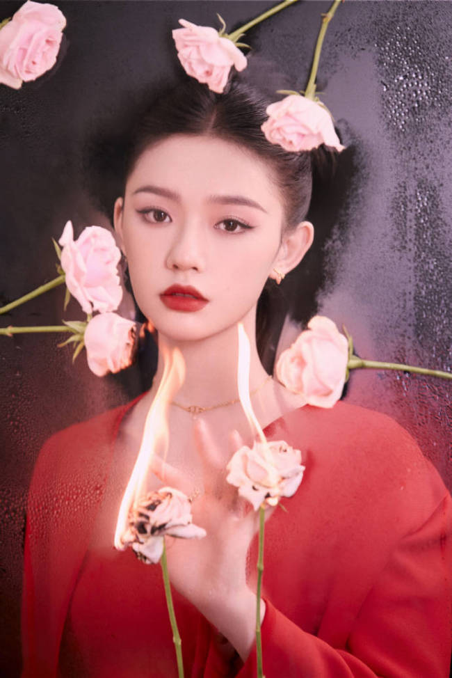 林允一组新造型图释出。她发型简单,妆容华美,一抹红唇撩人。