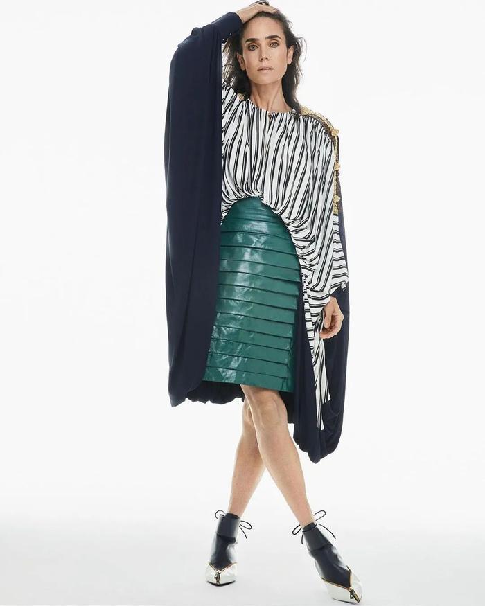 演员詹妮弗·康纳利登上希腊版《VOGUE》新刊封面,“战衣姐姐”全套大牌加身,黑发黑衣、不苟言笑,腿部肌肉线条亮眼。51岁的年龄丝毫不见疲态,依然还是那个酷劲十足的女神。