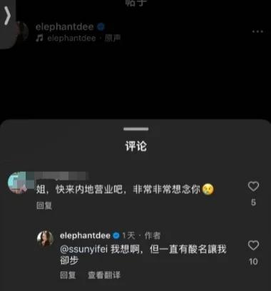 日前,有网友在小 S 社交平台评论区留言,让她来大陆营业,称 " 非常非常想念你 "。小 S 回复该网友表示:" 我想啊,但一直有酸名让我却步 "。